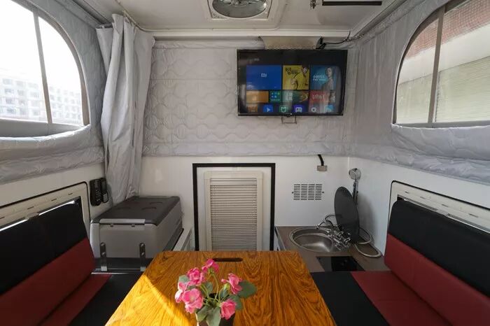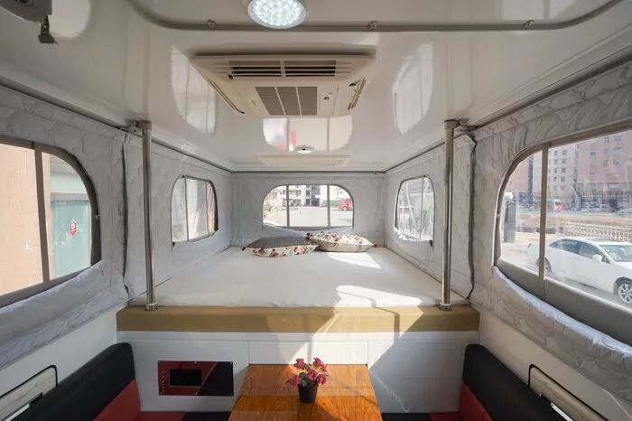 由于受到路途和物资的限制,很多人的自驾旅途走不远。也许很多人会途中选择入住酒店,但这样的方式并没有真正触摸到旅行的真谛。如果有一辆车,有床、沙发与空调供人休憩,有电视供人娱乐,可以洗热水澡还可以烹饪精致美餐,在恶劣的环境里不仅能保障基本的生活需求,还能给人一场完美的想停就停,想走就走的旅行。既是一个舒意行走的家,又能在自然里任意驰骋,那该多好!